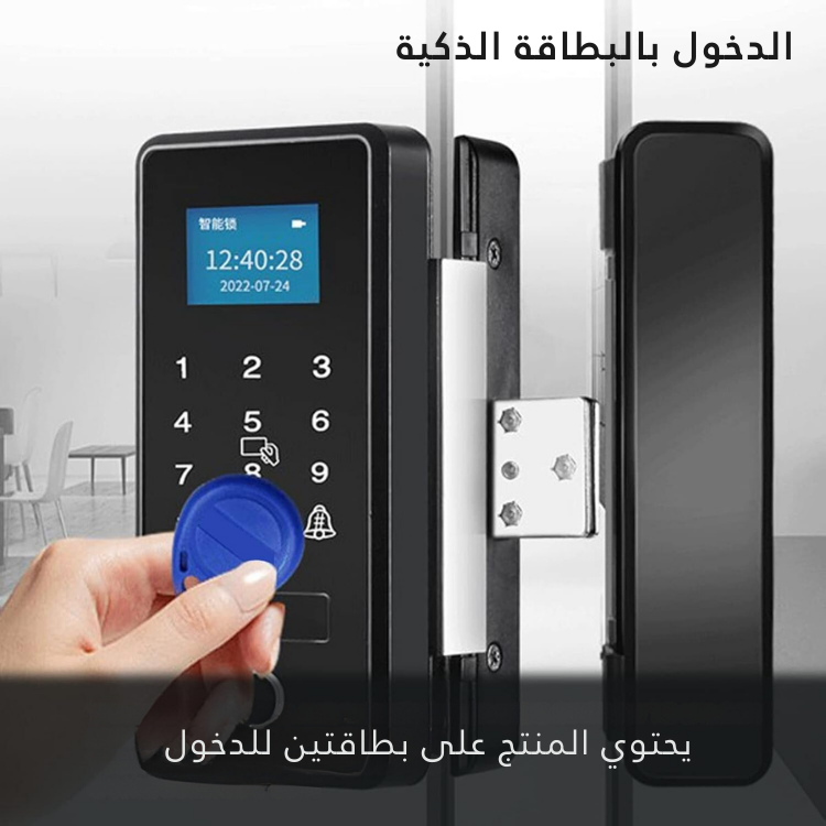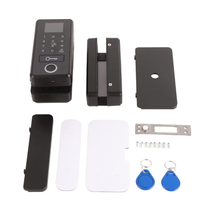 【المثقاب- التثبيت】يتم تثبيت قفل بصمة الإصبع بمشابك، بدون حفر متكرر، ويدخل الباب الزجاجي إلى جسم القفل لتثبيته، ويكتمل التركيب بسهولة. مناسبة للأبواب الزجاجية والأبواب الخشبية مع إطار أو بدونه.