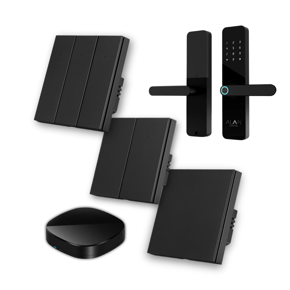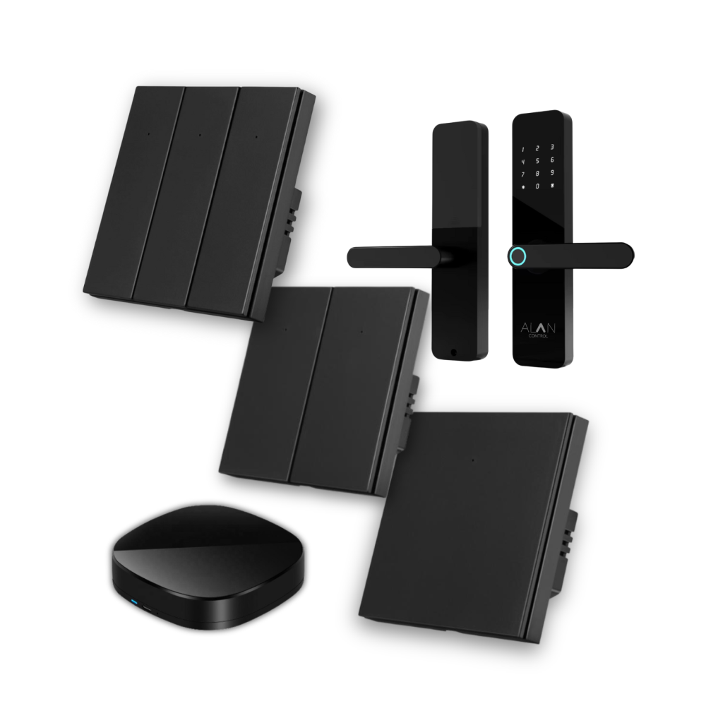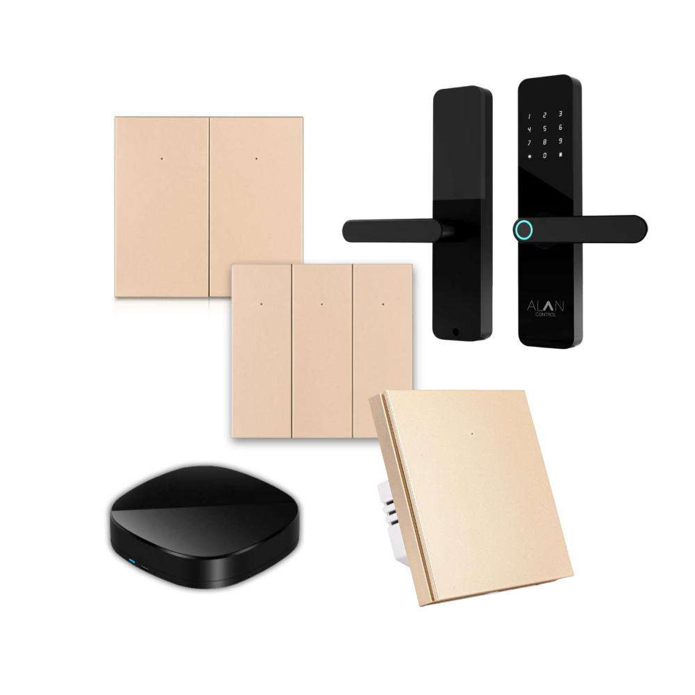 - مفاتيح إنارة ذكية (ألوان: أبيض، أسود، ذهبي) للتحكم بالإنارة من التطبيق أو الأوامر الصوتية